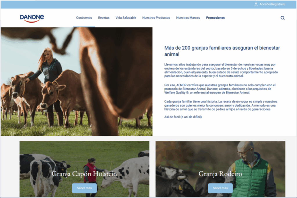 Danone nos muestra de dónde proviene su leche en “Nuestras Granjas”presentando una selección de productores ubicados en todo el territorio español. Asimismo, podemos encontrar en su web otras experiencias online como podcasts, descargables y promociones para aprender sobre la salud de los lácteos de forma didáctica y divertida.