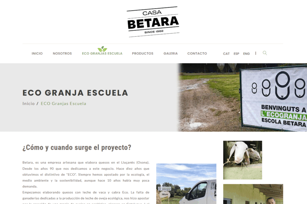 Betara es una empresa artesana que elabora quesos en el Lluçanès (Osona). Hace 10 años obtuvo el distintivo ECO y hoy cuenta con una ECO-Granja Escuela con más de 300 cabezas de ganado, un proyecto con fines educativos y sociales, visitable para grandes y pequeños. Realizan visitas guiadas para escuelas y grupos, para dar a conocer el trabajo de pastor y quesero, tanto in situ como con material audiovisual. En este sentido, Betara ha firmado un convenio con la Universitat de Vic-Universitat Central de Catalunya (UVic-UCC) para que los estudiantes de educación elaboren las actividades didácticas y diferentes talleres. También está en contacto con museos del Lluçanès como el Espai Rocaguinarda de Olost.